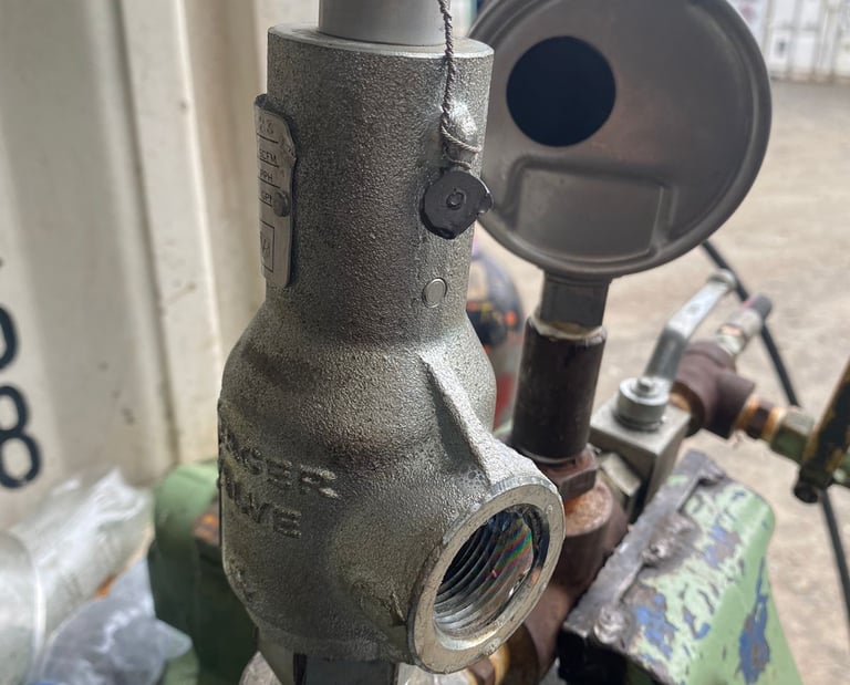 Inspeksi dan Pengujian di industri migas, panas bumi, minerba, konstruksi, dan manufaktur memastikan PSV/PRV berfungsi aman saat dibutuhkan, melepaskan tekanan berlebih. Meliputi pemeriksaan visual untuk mendeteksi kerusakan fisik dan tes fungsi atau popping test sesuai spesifikasi desain dan regulasi yang berlaku. (ASME sect. XIII & API 527)